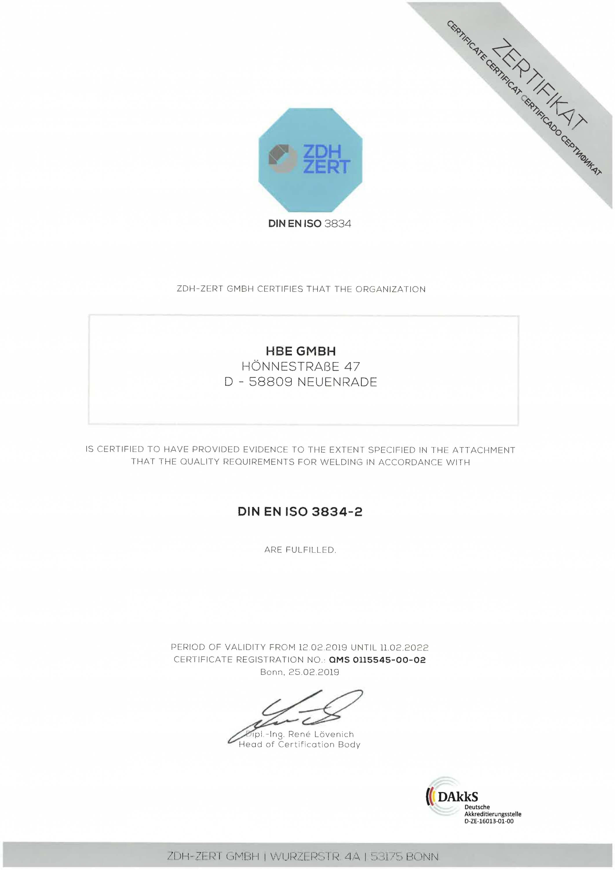 The company's own welding department has been again successfully certified according to DIN EN 1090 and DIN EN ISO 3834.