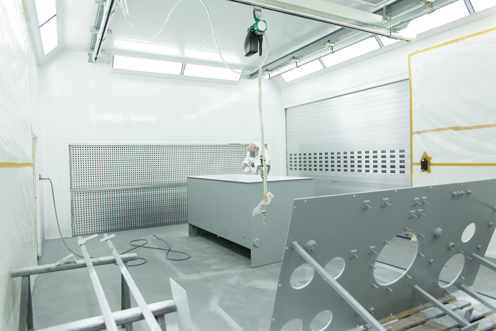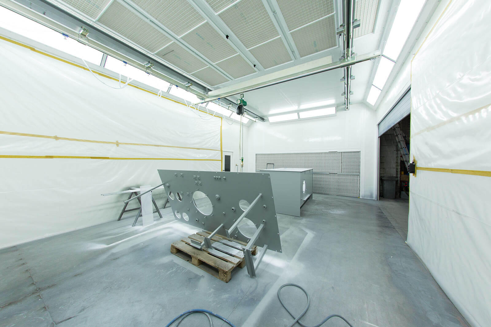 In addition and just in time for the start of 2019, HBE put a new coating and drying plant into operation. In the 9x6x4 meter large cabin, welding constructions like oil tanks, oil sumps or frames can be primed and painted according to customers’ requirements. All conventional and water-dilutable coatings may be used for processing. Thanks to the variable switching option from spraying to drying operation, HBE could significantly reduce lead times. A compressed air driven 1 ton crane supports the handling in the cabin on a distance of seven meters. At the same time, the paint stock was converted according to the latest environmental and safety regulations. Various safety cabinets with integrated ventilation system provide for a safe and correct storage of flammable hazardous materials in workplaces. These investments help to meet the steadily growing demands of finished painted components at the Neuenrade location.